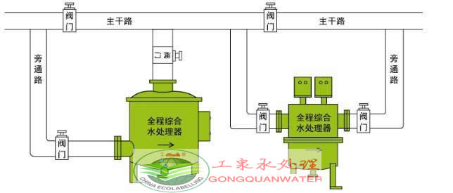 全程綜合水處理器是石家莊工泉水處理科技有限公司針對工業及民用用水系統普遍存在的結垢、腐蝕、菌藻滋生、水質污染、重金屬超標等問題,開發的新一代高效 綜合水處理設備。該設備利用數碼射頻效應場、活性過濾層及機械變徑阻擋層三位一體的綜合過濾、吸附體系,使一臺設備具有對水質綜合優化處理功能,從而達到防垢除垢、殺菌滅藻、除銹緩蝕、超凈過濾凈化水質的功效。具有機電一體化設計、流量大、純物理法處理、無需添加化學藥劑、操作簡單、維護方便、使用壽命可 達20年以上等諸多優點。